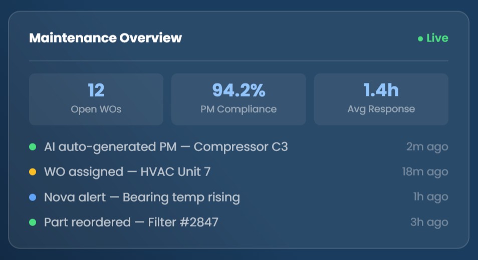 An AI-powered, mobile-first CMMS helps teams manage work orders, automate preventive maintenance, and gain real-time operational insights — from anywhere.